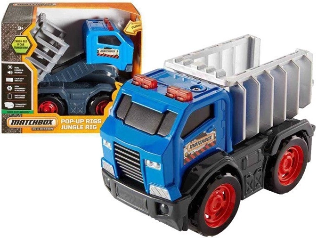 Erleben Sie unvergessliches Spielen mit dem Matchbox Klappbaren LKW, der interaktive Elemente für Kinder bietet. Die Kabine und der Anhänger heben sich an, ergänzt durch authentische Geräusche und blinkende Lichter.