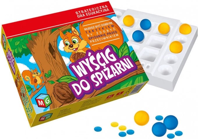 Was ist das für ein Trubel? Die Eichhörnchen versuchen, einen Vorrat an Nüssen anzulegen, damit sie in den Wintermonaten etwas zu essen haben. Jedes Eichhörnchen braucht so viele Vorräte wie möglich, aber das Einlagern ist nicht einfach. Um dir die Speisekammer zu sichern, musst du drei Nüsse nebeneinander stapeln, bevor es dein Gegner schafft.