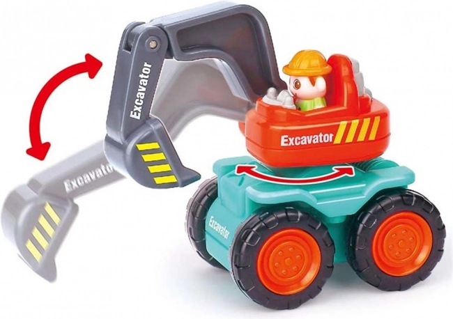 Baufahrzeuge für Kinder: Ideal ausgestattetes Plastikauto mit beweglichen Teilen für kreatives Spielen auf der Baustelle.