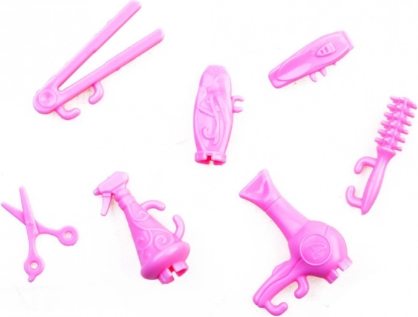 Föhn, Glätteisen, Schere und Zerstäuber unterstützen das Spiel im Schönheitssalon und fördern die Kreativität beim Frisieren.