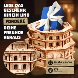 Integriert ist ein geheimes Fach (6 × 3,7 × 3,7 cm), in dem Sie einen Hinweis, eine Nachricht oder ein kleines Geschenk verbergen können – perfekt für eine originelle Überraschung. Im Lieferumfang finden Sie eine bebilderte Anleitung und einen QR-Code mit Hinweisen, damit Sie nicht lange feststecken. Dank der robusten Ausführung kann das Puzzle nach dem Lösen mit Freunden und Familie geteilt werden.