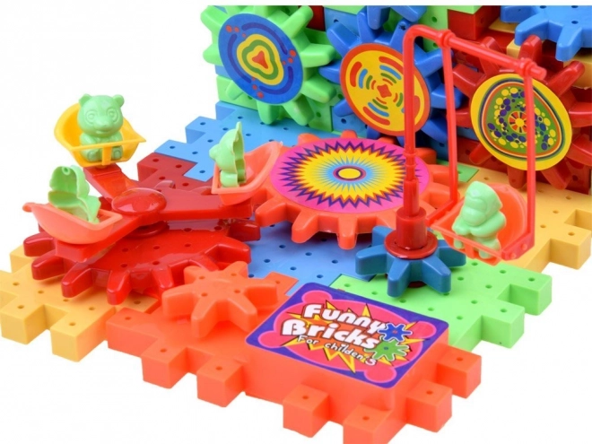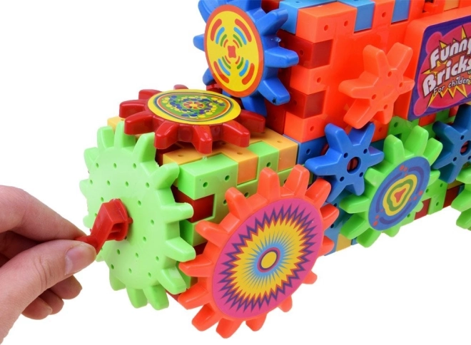 Das Set enthält ein mit AA-Batterie betriebenes Zahnrad, das Kinder verwenden können, um ihre Bauten zu beleben.