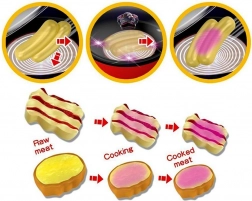 Dieses Küchen-Set bietet wunderbaren Spaß für jedes Kind, das kulinarische Erlebnisse liebt. Die Pfanne leuchtet auf Knopfdruck am Griff und erzeugt Geräusche von gebratenen Speisen, wodurch das Spiel realistischer wird. Zudem ändern die gebratenen Produkte unter dem Einfluss der Lichter in der Pfanne ihre Farbe.