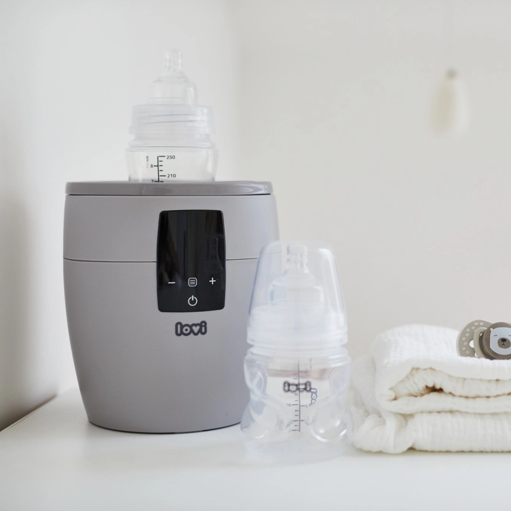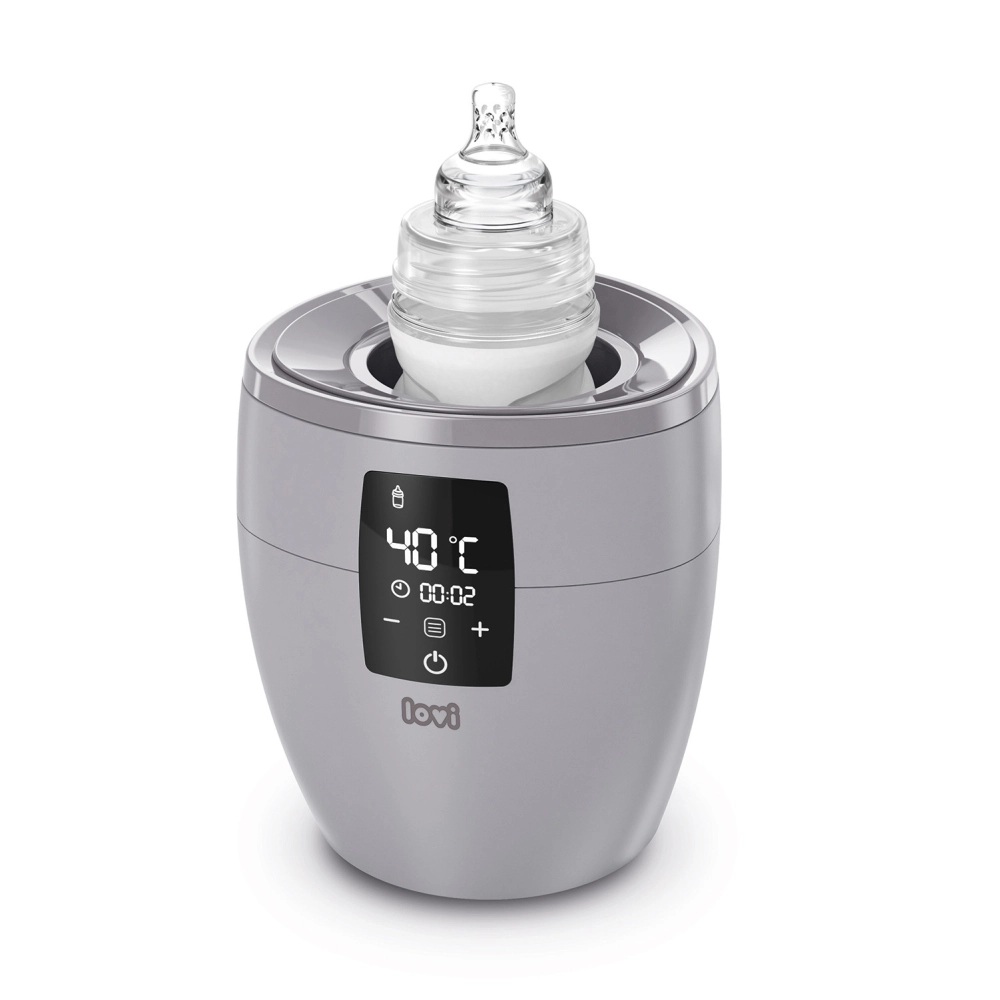 LOVI Flaschenwärmer 4-in-1. Schnelles und gleichmäßiges Erwärmen. Intuitive Bedienung auf einem übersichtlichen Display. 4 Funktionen in drei Modi: BOTTLE-Modus – Erwärmen von Flüssigkeiten in der Flasche, Auftauen von in Beuteln gelagerten Speisen. Hält die gewünschte Temperatur bis zu 10 Stunden. HOT-Modus – schnelles Erwärmen von Speisen + Sterilisationsfunktion für Flaschen und Zubehör. DINNER-Modus – hält die gewünschte Temperatur bis zu 3 Stunden. Sicher – automatische Abschaltung bei Wassermangel im HOT-Modus. Im Lieferumfang Messbecher für Wasser. Der LOVI Wärmer ist eine ideale und sichere Methode zum Erwärmen von Speisen. Er enthält einen Thermostat, der die eingestellte Temperatur sehr lange hält. Er schützt die Speisen vor Überhitzung und dem Verlust wertvoller Vitamine und Mineralstoffe. Der super schnelle LOVI-Wärmer stellt die Erwärmungszeit automatisch ein, unabhängig davon, ob die Speise gekühlt, gefroren oder Raumtemperatur hat. Der LOVI Wärmer ist zum Erwärmen von Speisen in folgenden Flaschen- oder Gläschenarten bestimmt: • in LOVI-Flaschen und den meisten anderen Weithalsflaschen • in klassischen Flaschen • in Gläschen mit fertigen Babynahrungen. Die maximale Flaschenbreite, die in diesen Wärmer passt, beträgt 6,5 cm. 4 Funktionen in 1 – erwärmt, hält warm, taut auf und sterilisiert mit Dampf. Schnell – erwärmt Speisen bereits in 2 Minuten, was ihn den meisten auf dem Markt erhältlichen Wärmern überlegen macht. *80 ml Milch/Wasser mit einer Ausgangstemperatur von 21°C. Universell – kompatibel mit den meisten auf dem Markt erhältlichen Babyflaschen. Sicher – automatische Abschaltung bei Wassermangel im HOT-Modus. Der Wärmer entspricht den Anforderungen: Richtlinie 2006/95/EG des Europäischen Parlaments und des Rates zur Angleichung der Rechtsvorschriften der Mitgliedstaaten betreffend elektrische Betriebsmittel zur Verwendung innerhalb bestimmter Spannungsgrenzen. Richtlinie 2011/65/EU des Europäischen Parlaments und des Rates zur Beschränkung der Verwendung bestimmter gefährlicher Stoffe in elektrischen und elektronischen Geräten. Richtlinie 2004/108/EG des Europäischen Parlaments und des Rates zur Angleichung der Rechtsvorschriften der Mitgliedstaaten über die elektromagnetische Verträglichkeit. Hinweis: Genaue Anweisungen zur geeigneten und richtigen Pflege des Produkts finden Sie in der Bedienungsanleitung.