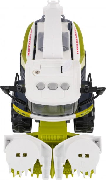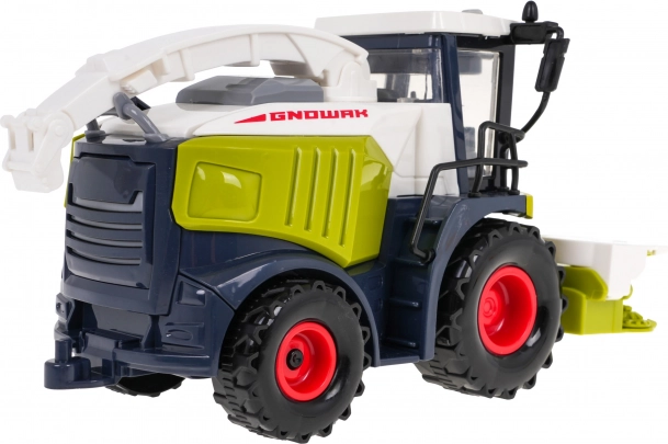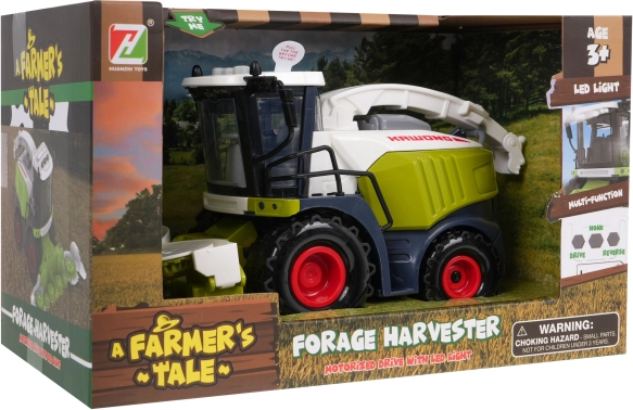 Interaktiver Mähdrescher mit Sound- und Lichtfunktionen sowie beweglichen Teilen für kleine Landwirtschafts-Fans ab 3 Jahren. Der Mähdrescher ist in für diesen Maschinentyp typischen Farben gehalten und mit Schneidwerk und Getreideförderer ausgestattet. Das Fahrzeug verfügt über drehbare, profilierte Räder und eine „verglaste“ Kabine. Der Mähdrescher erzeugt Motor-, Hup- und Warnsignale; auf dem Dach befindet sich ein Soundpanel mit Tasten. Die Geräusche werden von blinkenden LED-Lichtern am oberen Teil der Kabine begleitet. Dank Reibungsantrieb bewegt sich der Mähdrescher sanft über den Boden. Das Spielzeug wird mit 3 x 1,5V AG13-Batterien betrieben, Batterien sind im Lieferumfang enthalten. Spezifikationen: .- der Mähdrescher fährt vorwärts und rückwärts, .- große Räder mit vorderem Reibungsantrieb, .- Soundfunktionen: Motorlauf, Hupe, Warnsignale, .- Lichtfunktionen: funktionale vordere LED-Scheinwerfer, .- Heben und Absenken des Schneidwerks (manuell), .- Abklappen der Seitenteile des Schneidwerks (manuell), .- drehbare Vorderräder (manuell), .- Heben und Absenken der seitlichen Klappen über den Hinterrädern (manuell), .- heb- und um 360 Grad drehbarer Getreideförderer (manuell), .- heb- und um 360 Grad drehbares Auslaufrohr am Förderer (manuell), .- Haken an der Rückseite des Mähdreschers. . |