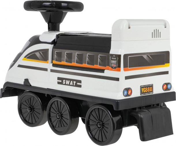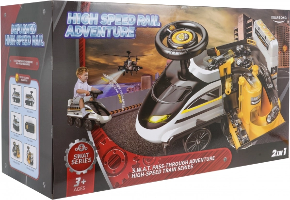 Das Rutschfahrzeug ist vom Polizeithema inspiriert, inklusive einzigartigem SWAT-Design und interaktiven Funktionen, die die Vorstellungskraft anregen.