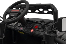 Die Innenausstattung umfasst luxuriöse Sitze aus Ökoleder und ein multifunktionales Audiopanel mit FM-Radio, Bluetooth sowie Wiedergabeoptionen von SD-Karten und USB. Zusätzlich können Kinder die integrierten Melodien und Soundeffekte beim Fahren genießen.