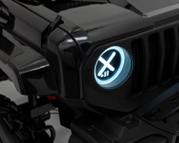 Das Fahrzeug wird von vier starken 35W-Motoren angetrieben, die eine sanfte Fahrt sowohl auf ebenen Flächen als auch im Gelände ermöglichen.