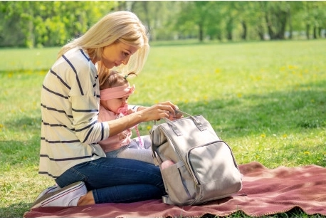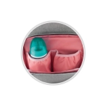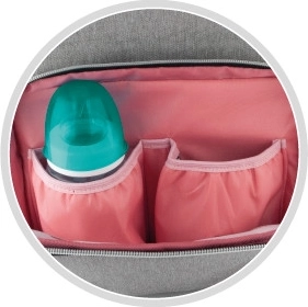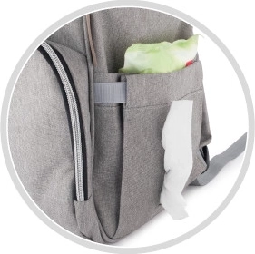 Die integrierte Thermotasche hält Getränke länger auf der gewünschten Temperatur, und die Riemen ermöglichen die einfache Befestigung des Rucksacks am Kinderwagen.