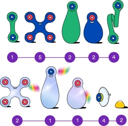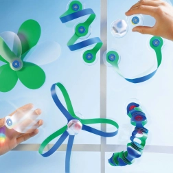 Die Saugnäpfe ermöglichen das Gestalten an Fenstern und anderen glatten Flächen. Prismatische Elemente brechen das Licht und erzeugen eindrucksvolle Farbschimmer, die jedes Fenster in eine Spielfläche verwandeln.