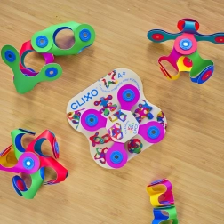 CLIXO Tiny & Mighty ist ein cleveres magnetisches Konstruktionsset aus patentiertem synthetischem Papier, das sich fast grenzenlos biegen, drehen und verbinden lässt. Jedes vierblättrige Teil verbindet sich dank der Magnete mühelos zu 2D- und 3D-Konstruktionen und haftet auf allen magnetischen Oberflächen. Kompakte Maße und geringes Gewicht machen es zum idealen Reisespiel.