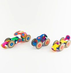 Der CLIXO Wheel Creator ist ein flexibles magnetisches Bauset für Kinder von 6–10 Jahren, das Kreativität, Raumwahrnehmung und Feinmotorik fördert. Dank der drehbaren Magnete mit Fixierung in 24 Positionen behalten die Modelle stabil ihre Form und eignen sich auch für dynamisches Spielen. Die Holzräder bringen Ihre Kreationen in Bewegung – von Autos und Zügen bis zu niedlichen Tieren – und das alles in leuchtenden Regenbogenfarben.