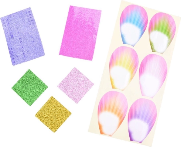 Zum Set gehören Aufkleber, Glitzer und Verzierungen, mit denen Kinder ein individuelles Design für die Flügel und die Blüten gestalten können. Die Kombination aus Basteln und Spielen fördert die Feinmotorik sowie das Gespür für Farben und Details – jede Blüte und jede Fee werden einzigartig sein.