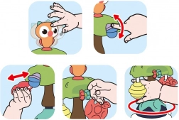 Bunte und bewegliche Teile des Spielzeugs fördern die sensorische und motorische Entwicklung der Kinder.