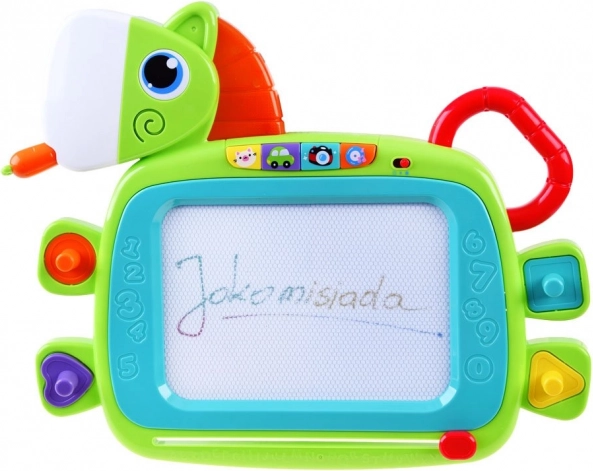 Die Tafel in Form eines Pferdes verfügt über Lichteffekte und Klänge, die jedes Kind ansprechen.