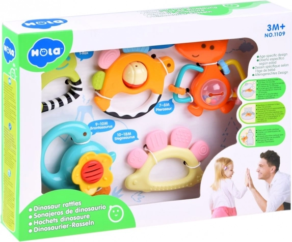 Set aus 5 Rasseln und Beißringen Dinosaurier