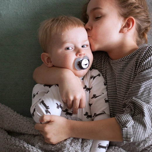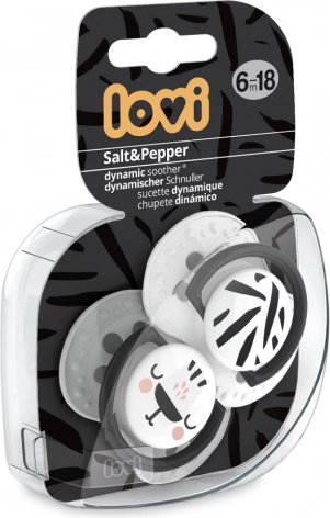 Zählen Sie und Ihr Baby auch zu den Liebhabern der designstarken LOVI-Schnuller? Dann dürfen Sie sich freuen! Wunderschön, modern, einfach schön – genau so ist die brandneue, minimalistische Kollektion Salt&Pepper. Die schwarz-weiße Farbe trifft die neuesten Trends und ist zudem eine neutrale Kollektion, die sowohl für Mädchen als auch für Jungen großartig ist. Der dynamische LOVI-Schnuller wurde in Zusammenarbeit mit Sprachtherapeuten entwickelt, um die natürliche und gesunde Entwicklung des Gaumens, der Zähne und des Zahnfleisches des Kindes zu unterstützen. Der symmetrische, dynamische Silikonschnuller von LOVI wurde klinisch getestet. Alle LOVI-Schnuller bestehen aus geschmacks- und geruchsneutralem Silikon. Silikonschnuller sind langlebiger und lassen sich leichter hygienisch sauber halten. Der einzigartige, symmetrische, dynamische Sauger wird sehr gut entlüftet und verformt den Gaumen des Kindes nicht. verhindert den Reflex, auf dem Schnuller herumzukauen ermöglicht natürliches Schlucken von Speichel unterstützt die gesunde Sprachentwicklung und die Ausbildung des Bisses verformt den Gaumen des Kindes nicht wird sehr gut entlüftet Der dynamische Sauger besteht aus unterschiedlich dichten Silikonschichten, wodurch er sich entsprechend dem Saugtempo des Kindes verlängert und zusammenzieht. Die symmetrische Form erinnert an die Brustwarze der Mutter. Die Form des Saugers ermöglicht zudem, den Schnuller beliebig in den Mund des Kindes einzuführen (es gibt keine ausgewiesene Ober- oder Unterseite). Die geformte, ausgeschnittene Schildform ermöglicht dem Kind freies Atmen durch die Nase. Sie ist aus sicherem, BPA-freiem Material hergestellt. Der einzigartige Schildrand besteht aus medizinischem Material, ist angenehm im Griff und verhindert Druckstellen durch den Schnuller. Öffnungen im Schild ermöglichen Luftzirkulation, verhindern Speichelansammlungen hinter dem Schild und beugen so Irritationen der empfindlichen Babyhaut vor. Der Ring am Schnuller sitzt fest, erleichtert das Halten und Anreichen des Schnullers. Sie können daran eine Kette oder Schnur befestigen. Aus hygienischen Gründen ist der Schnuller mit einer Kunststoffkappe versehen. Die Kunststoffbox dient als Etui zur hygienischen Aufbewahrung der Schnuller. LOVI-Schnuller wurden von Endverbrauchern ausgezeichnet: Die Schnuller sind in vielen modernen Farbdesigns erhältlich. Set-Inhalt: 2 Stk. dynamische LOVI-Schnuller 2 Stk. Kunststoffkappen für den Schnuller 1 Stk. Kunststoffbox Gebrauchsanweisung: Vor der ersten Verwendung den Schnuller aus hygienischen Gründen etwa 5 Minuten in kochendem Wasser sterilisieren. Nach dem Abkühlen eventuell verbliebenes Wasser aus dem Schnuller ausdrücken. Vor jeder Verwendung den Schnuller in warmem Wasser waschen. Keine chemischen Desinfektionsmittel verwenden! Hohe Konzentrationen dieser Mittel können die Kunststoffteile des Schnullers beschädigen. Tauchen Sie den Schnuller niemals in süße Substanzen oder in Medikamente – Sie setzen Ihr Kind der Gefahr von Zahnschmelzschäden aus. Den Schnuller maximal 1–2 Monate verwenden, danach aus hygienischen und sicherheitsrelevanten Gründen gegen einen neuen austauschen. Sollte der Schnuller dem Kind in den Mund rutschen, KEINE PANIK – der Schnuller ist so konstruiert, dass das Kind ihn nicht schlucken kann, und Sie können ihn in solchen Fällen sicher entfernen. Entfernen Sie den Schnuller so vorsichtig wie möglich. Den Schnuller in einem sauberen, trockenen und geschlossenen Etui aufbewahren. Wir empfehlen nicht, den Schnuller für Kinder über 3 Jahre zu verwenden. Achtung! Wichtig für die Gesundheit und Sicherheit Ihres Kindes! Vor jeder Gabe an das Kind den Schnuller sorgfältig prüfen. Achten Sie besonders, sobald die ersten Zähnchen durchbrechen. Testen Sie die Qualität des Saugers durch gründliches Ziehen in alle Richtungen. Bei ersten Anzeichen von Beschädigungen den Schnuller sofort entsorgen und nicht weiterverwenden. Verwenden Sie nur solche Schnullerhalter, die den Anforderungen der Norm EN 12586 entsprechen. Befestigen Sie den Schnuller niemals an verschiedenen Schnüren, Kordeln oder Bändern der Kleidung. Erstickungsgefahr. Lassen Sie den Schnuller nicht in direktem Sonnenlicht, in der Nähe von Wärmequellen oder länger als empfohlen in Desinfektionsmitteln – dies kann zu einer Schwächung des Saugers führen. Bewahren Sie die abgenommene Kappe außerhalb der Reichweite von Kindern auf – so beugen Sie möglicher Erstickungsgefahr vor. Der Silikonschnuller entspricht folgenden Anforderungen: Richtlinie 2001/95/EG des Europäischen Parlaments und des Rates über die allgemeine Produktsicherheit EN 1400-1 Produkte für die Kinderpflege – Schnuller für Säuglinge und Kleinkinder – Teil 1: Allgemeine Sicherheitsanforderungen und Produktinformationen EN 1400-2 Produkte für die Kinderpflege – Schnuller für Säuglinge und Kleinkinder – Teil 2: Mechanische Anforderungen und Prüfungen EN 1400-3 Produkte für die Kinderpflege – Schnuller für Säuglinge und Kleinkinder – Teil 3: Chemische Anforderungen und Prüfungen LOVI-Schnuller enthalten kein Bisphenol A.
