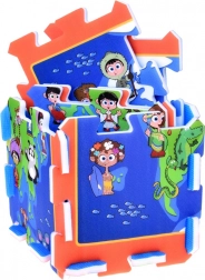 Die Schaum-Spielmatte aus miteinander verbindbaren Teilen bietet eine komfortable, dämpfende Oberfläche zum Spielen, Üben und Ausruhen. Motive von Kindern und Tieren aus aller Welt motivieren zum Entdecken und Lernen durch Spiel. Die Teile lassen sich leicht zu einer flachen Matte oder zu 3D-Formen wie einem Würfel oder Häuschen zusammensetzen.