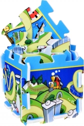 Jedes Teil besitzt einen verzahnten (Puzzle-)Rand für schnelles Verbinden ohne Verrutschen. Aus der Matte lassen sich zudem 3D-Würfel oder einfache Häuschen bauen – das Spiel wechselt so von der Fläche in den Raum. Geeignet für Kinderzimmer, Terrasse und Garten.