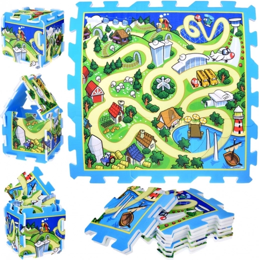 Diese Schaumstoffmatte/Puzzle mit Stadt- und Straßenmotiv verwandelt jedes Zimmer in eine spannende Verkehrszone. Teile aus weichem, aber robustem Schaum schaffen eine stoßdämpfende und sichere Oberfläche zum Sitzen, Krabbeln und für die ersten Schritte. Kinder können mit Autos über die Straßen fahren, Farben und Formen lernen und ihre Fantasie entfalten.