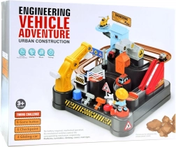 Im Lieferumfang enthalten sind drei Baufahrzeuge (Kipper, Betonmischer, Tankwagen), ein Hubschrauber und eine Bauarbeiterfigur. Die Bahn besteht aus robustem Kunststoff und ist nach einfacher Montage bereit für viele Stunden Spielspaß. Ideal als Geschenk für kleine Fans von Baumaschinen.