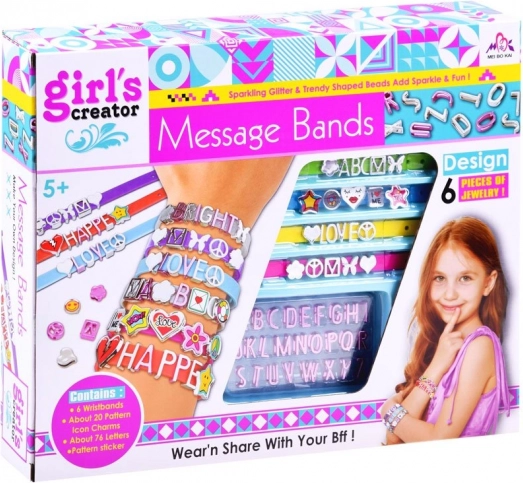 Das Kreativset enthält alles Notwendige, um schöne und kreative Armbänder zu gestalten. 5 Bänder in verschiedenen Farben mit verstellbarem Verschluss ermöglichen Anpassung für verschiedene Handgelenkgrößen. Kunststoffbuchstaben und Verzierungen können frei kombiniert werden, um Namen, Botschaften und Muster zu erstellen - die Möglichkeiten sind endlos! Diese Aktivität fördert gleichzeitig Kreativität, Geschicklichkeit und Fantasie.