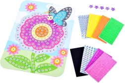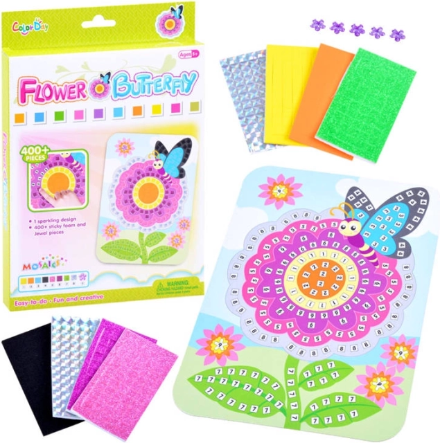 Mosaik Blume mit Schmetterling ist ein kreatives Set für Kinder, die Spaß an künstlerischen Arbeiten haben. Hervorragend zur Förderung der Fähigkeiten mit farbigen Schaumstoffquadraten geeignet.