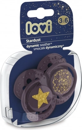 Stardust ist da! Einzigartige, auffällige Premium-Kollektion von LOVI. Das einzigartige Design der Stardust-Kollektion – verziert mit goldenem Glitzer, der an den Sternenhimmel erinnert. Die Kollektion umfasst den dynamischen LOVI-Schnuller in der Größe 3–6 Monate, der in Zusammenarbeit mit Neurologopäden entwickelt wurde, um die natürliche und gesunde Entwicklung von Gaumen, Zähnen und Zahnfleisch des Kindes zu unterstützen. Der Sauger passt sich dynamisch dem Saugreflex des Kindes an und stört ihn nicht. BPA-frei. Packung mit 2 Stück. WIR SIND ALLE AUS STERNENSTAUB GEMACHT Der dynamische LOVI-Schnuller wurde in Zusammenarbeit mit Neurologopäden entwickelt, um die natürliche und gesunde Entwicklung von Gaumen, Zähnen und Zahnfleisch des Kindes zu gewährleisten. Der symmetrische, dynamische Silikonschnuller von LOVI ist klinisch getestet. Alle LOVI-Schnuller bestehen aus geschmacks- und geruchsneutralem Silikon. Silikonschnuller sind langlebiger und lassen sich leichter hygienisch sauber halten. Der einzigartige symmetrische, dynamische Sauger entlüftet sehr gut und verformt den Gaumen des Kindes nicht. verhindert den Reflex, auf den Schnuller zu beißen ermöglicht natürliches Schlucken von Speichel unterstützt die gesunde Sprachentwicklung und die korrekte Bissbildung verformt den Gaumen des Kindes nicht entlüftet sehr gut Der dynamische Sauger besteht aus ungleichartigen Silikonschichten, wodurch er sich je nach Saugtempo des Kindes verlängert und zusammenzieht. Die symmetrische Form erinnert an die Brustwarze der Mutter. Die Form des Saugers ermöglicht außerdem das Einführen des Schnullers in den Mund des Kindes in beliebiger Ausrichtung (keine obere oder untere Seite vorgegeben). Die geformte, ausgeschnittene Schildform ermöglicht dem Kind freies Atmen durch die Nase. Hergestellt aus sicherem, BPA-freiem Material. Der einzigartige Rand des Schildes besteht aus medizinischem Material, ist angenehm zu berühren und verhindert Druckstellen durch den Schnuller. Öffnungen im Schild ermöglichen die Luftzirkulation, verhindern die Ansammlung von Speichel hinter dem Schild und beugen so Hautreizungen der empfindlichen Babyhaut vor. Der Ring am Schnuller sitzt fest, erleichtert das Halten und Anreichen des Schnullers. Sie können daran eine Kette oder Schnur befestigen. Aus hygienischen Gründen ist der Schnuller mit einer Kunststoffkappe versehen. Die Kunststoffbox dient als Etui zur hygienischen Aufbewahrung der Schnuller. LOVI-Schnuller wurden von Endverbrauchern ausgezeichnet. Die Schnuller sind in vielen modernen Farbdesigns erhältlich. Set enthält: 2 Stk dynamische LOVI-Schnuller 2 Stk Kunststoffkappen für den Schnuller 1 Stk Kunststoffbox Bedienungsanleitung: Vor dem ersten Gebrauch den Schnuller aus hygienischen Gründen etwa 5 Minuten in kochendem Wasser sterilisieren. Nach dem Abkühlen restliches Wasser aus dem Schnuller ausdrücken. Vor jedem Gebrauch den Schnuller in warmem Wasser waschen. Keine chemischen Desinfektionsmittel verwenden! Hohe Konzentrationen solcher Mittel können die Kunststoffteile des Schnullers beschädigen. Tauchen Sie den Schnuller niemals in süße Substanzen oder Medikamente – dies setzt das Kind dem Risiko von Zahnschmelzschäden aus. Den Schnuller maximal 1–2 Monate verwenden und ihn anschließend aus hygienischen und sicherheitsrelevanten Gründen durch einen neuen ersetzen. Wenn der Schnuller dem Kind in den Mund rutscht, KEINE PANIK – der Schnuller ist so konstruiert, dass das Kind ihn nicht verschlucken kann, und Sie können ihn in solchen Fällen sicher entfernen. Entfernen Sie den Schnuller so vorsichtig wie möglich. Bewahren Sie den Schnuller in einem sauberen, trockenen und geschlossenen Etui auf. Wir empfehlen nicht, den Schnuller für ein Kind über 3 Jahre zu verwenden. Warnhinweis! Wichtig für die Gesundheit und Sicherheit Ihres Kindes! Vor jeder Gabe an das Kind den Schnuller auf Unversehrtheit prüfen. Achten Sie besonders darauf, sobald die ersten Zähnchen erscheinen. Die Qualität des Saugers durch gründliches Ziehen in alle Richtungen prüfen. Bei ersten Anzeichen von Beschädigungen den Schnuller sofort entsorgen und nicht weiter verwenden. Verwenden Sie nur solche Schnullerhalter, die den Anforderungen der Norm EN 12586 entsprechen. Befestigen Sie den Schnuller niemals an verschiedenen Schnüren, Bändchen oder Bändern an der Kleidung. Erstickungsgefahr. Lassen Sie den Schnuller nicht direktem Sonnenlicht, in der Nähe von Wärmequellen oder länger als empfohlen in Desinfektionsmitteln – dies kann zur Schwächung des Saugers führen. Bewahren Sie die abgenommene Kappe außerhalb der Reichweite von Kindern auf – Erstickungsgefahr. Der Silikonschnuller entspricht den Anforderungen von: Richtlinie 2001/95/EG des Europäischen Parlaments und des Rates über die allgemeine Produktsicherheit EN 1400–1 Produkte für die Kinderpflege – Schnuller für Säuglinge und Kleinkinder – Teil 1: Allgemeine Sicherheitsanforderungen und Produktinformationen EN 1400–2 Produkte für die Kinderpflege – Schnuller für Säuglinge und Kleinkinder – Teil 2: Mechanische Anforderungen und Prüfungen EN 1400–3 Produkte für die Kinderpflege – Schnuller für Säuglinge und Kleinkinder – Teil 3: Chemische Anforderungen und Prüfungen LOVI-Schnuller enthalten kein Bisphenol A.