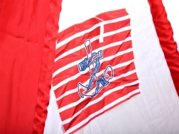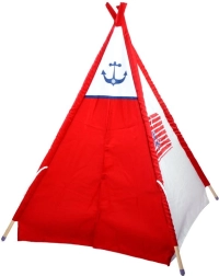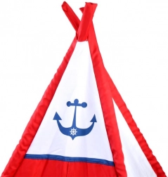 Dieses Tipi-Zelt hat eine auffällige rot-weiße Farbkombination mit maritimem Anker-Motiv, die den Kindern eine thematische und unterhaltsame Spielumgebung bietet.