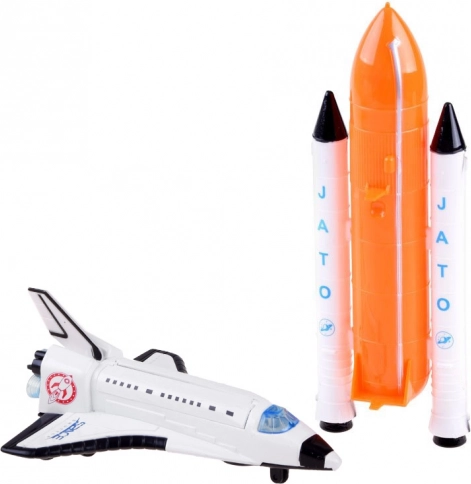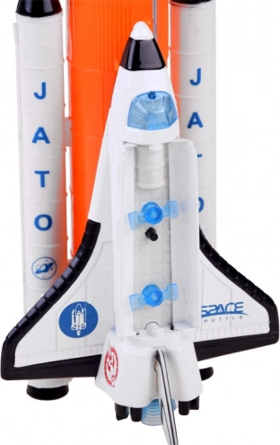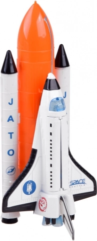 Zum Set gehört ein Shuttle-Modul mit den Maßen 15 cm x 10,5 cm x 6 cm und ein Haupttank mit Hilfsraketen in der Größe 22 cm x 7 cm x 4 cm.