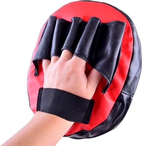 - die andere Person nimmt das Schlagpolster in die Hand, das mit bequemen Fingergriffen und einem einstellbaren Klettverschluss ausgestattet ist. Das Polster sorgt während des Trainings für Sicherheit und Komfort.