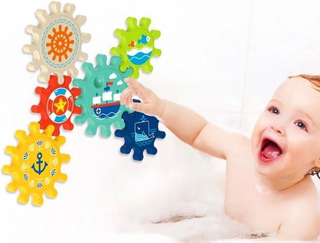 Fröhliche und bunte Zahnräder mit maritimen Motiven, ideal für den Badespaß. Entwickelt, um die motorischen Fähigkeiten kleiner Kinder zu fördern.