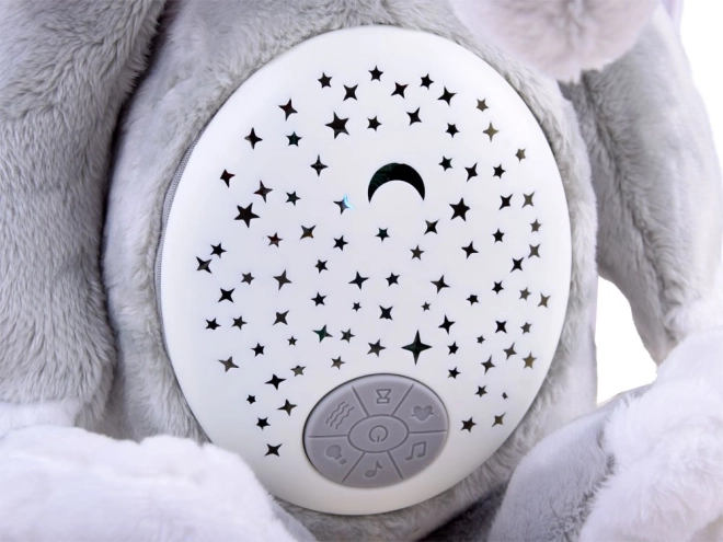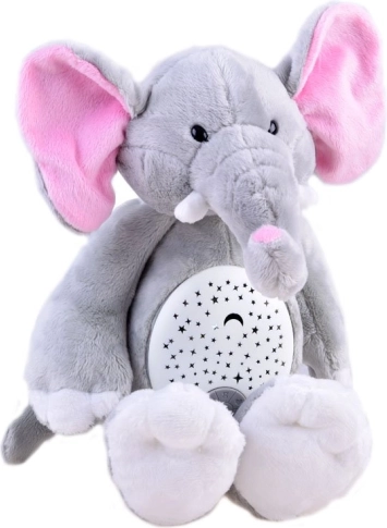 Plüschelefant mit Projektor und Soundeffekten ist ideal für die jüngsten Familienmitglieder. Hergestellt aus weichem grauem Plüsch mit rosa Ohren, dient er als beruhigender Plüsch und Nachtlicht für Kinder.