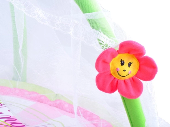 Die Baby-Spielmatte ist so konzipiert, dass sie einen sicheren und bequemen Spielplatz für Ihr Kind schafft. Ihre leuchtenden Farben und das weiche Material sind ideal für tägliches Spielen oder Entspannung. Die Matte ist mit Bögen mit Blumen und einem Moskitonetz ausgestattet, die vor Insekten schützen und die Attraktivität für Kinder erhöhen.