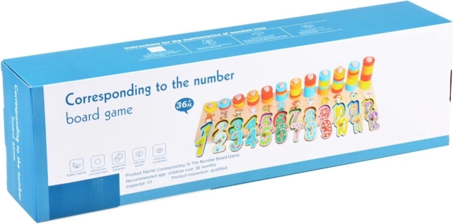 Dieses Lernspielzeug aus Holz kombiniert Formensortieren, Farbsortieren und erste Mathematik. Kinder setzen große Ziffern in die passenden Aussparungen und stecken bunte Ringe auf Stifte, wodurch sie den Zahlenwert und einfaches Zählen leicht begreifen. Die Tierillustrationen bei den einzelnen Zahlen unterstützen das Gedächtnis und den Wortschatz.