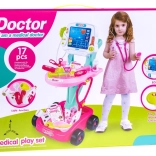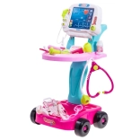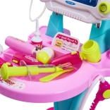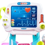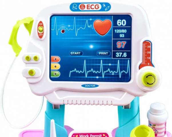 Das interaktive Panel mit Effekten (Licht und Ton) simuliert die Patientenüberwachung, während funktionale Elemente wie das „blinkende Herz“ am Stethoskop oder die beleuchteten Werte am Thermometer und Blutdruckmessgerät noch tiefer ins Spiel hineinziehen. Der Wagen mit Rollen ermöglicht das einfache Transportieren des gesamten Sets.