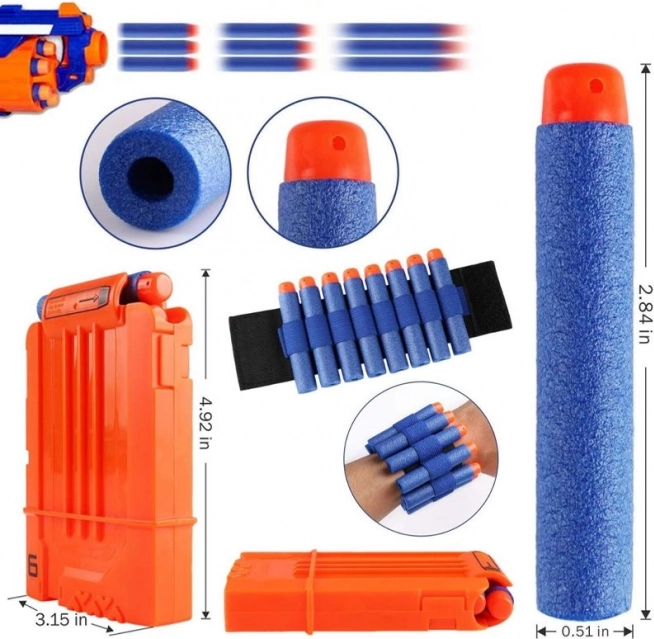 4. Zusätzliches Magazin: Das Munitionsmagazin ist ein weiteres Element, das Ihre Effizienz auf dem Schlachtfeld erhöht. Magazine lassen sich leicht austauschen, sodass Sie mit dem Schießen fortfahren können.