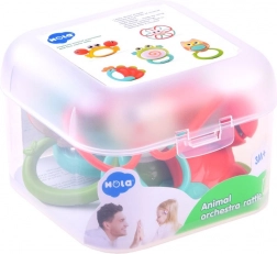 Rasselkollektion bietet fünf verschiedene Spielzeuge in Tierform, die für eine sichere Handhabung durch kleine Kinderhände gestaltet wurden. Diese Rasseln nicht nur unterhalten Ihr Kind, sondern unterstützen auch seine sensorische und motorische Entwicklung.
