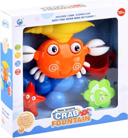 Die bunte Krabbe mit Fontäne verwandelt jedes Bad in eine unterhaltsame Wassershow. Einfach Wasser in den Behälter auf dem Kopf gießen – Räder beginnen sich zu drehen, Augen und Scheren bewegen sich und aus dem Mund der Krabbe sprudelt eine kleine Fontäne. Das Spielzeug lässt sich mit starken Saugnäpfen leicht an Fliesen, Wanne oder Duschwänden befestigen.