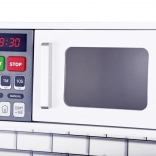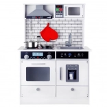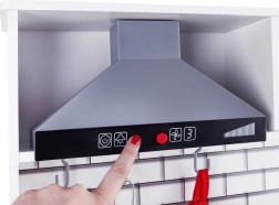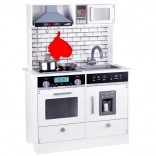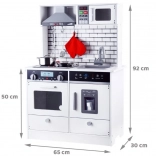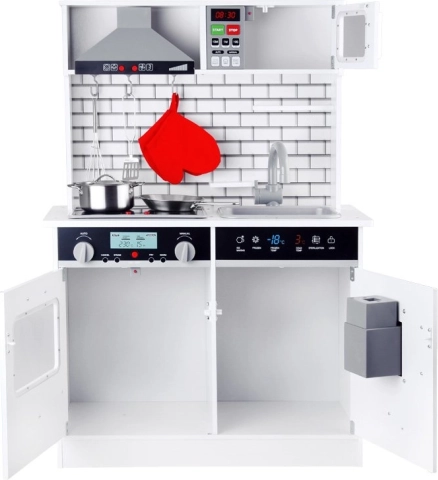 Diese schöne Holzküche ist mit allen notwendigen Geräten ausgestattet, die es den Kindern ermöglichen, die leckersten Gerichte zu kochen. Die Gestaltung in Weiß mit modernen Fliesen passt perfekt in jedes Kinderzimmer oder Küchenbereich.