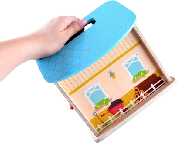 Holzbauernhof für Kinder kann der Anfang eines großen Abenteuers sein. Die Fantasie und Kreativität der Kinder sind grenzenlos. Nach dem Spiel kann das Haus geschlossen werden, was die Lagerung, den Transport erleichtert und die Sicherheit der Figuren innen gewährleistet. Dieses Spielzeug fördert kreatives Spielen, entwickelt die Vorstellungskraft und hilft, viele weitere Fähigkeiten zu entwickeln.