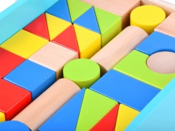 • 32 Holzbausteine mit einer Länge von 4 bis 8 cm