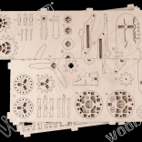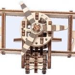 Der Bausatz besteht aus hochwertigem Birken-Sperrholz und wird ohne Klebstoff oder Werkzeuge zusammengebaut. Die Abmessungen des fertigen Modells betragen ca. 16,1 x 14 x 8,8 cm. Ein großartiges Geschenk für Flugzeugliebhaber, das stundenlangen Spaß und Einblicke in mechanische Übersetzungen und Zahnräder garantiert.