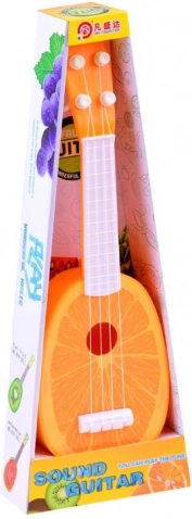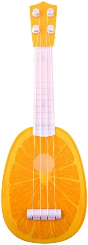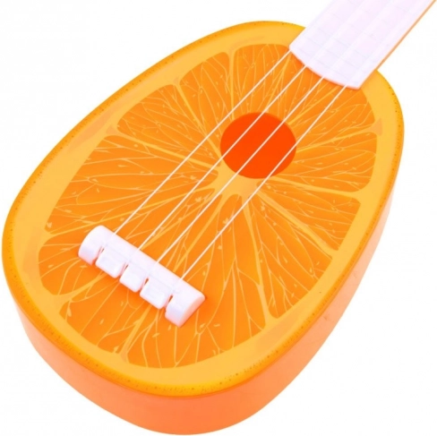 Die niedliche Kinder-Ukulele mit Orangenmotiv begeistert kleine Musikfans. Sie ist leicht, robust und dank vier Saiten sowie verstellbarem Hals ideal für die ersten musikalischen Schritte. Ein verspieltes Design, geringes Gewicht und die kompakte Länge von 37 cm machen sie zur tollen Wahl zum Spielen und als Geschenk.