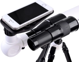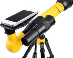 Befestigen Sie das Telefon am Okular und betrachten oder nehmen Sie das Bild direkt auf dem Display auf. Ideal, um die ersten astronomischen Entdeckungen zu teilen.