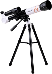 Dieses leichte und einfach zu transportierende Kinderteleskop ist eine großartige Wahl für junge Astronomiebegeisterte. Das optische System vom Typ Linsenteleskop mit schrägem Spiegelprisma sorgt für höheren Kontrast und eine bessere Korrektur von Abbildungsfehlern, sodass Details auf der Mondoberfläche klarer sichtbar werden. Drei austauschbare Okulare bieten eine Vergrößerung bis 40x – ideal für die ersten Schritte in die Himmelsbeobachtung.