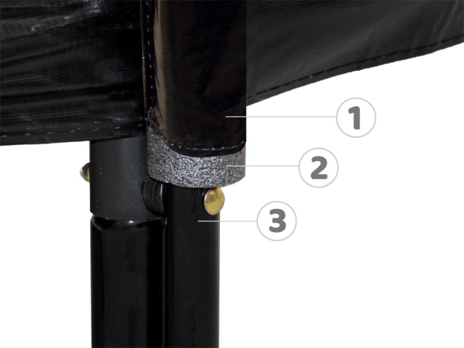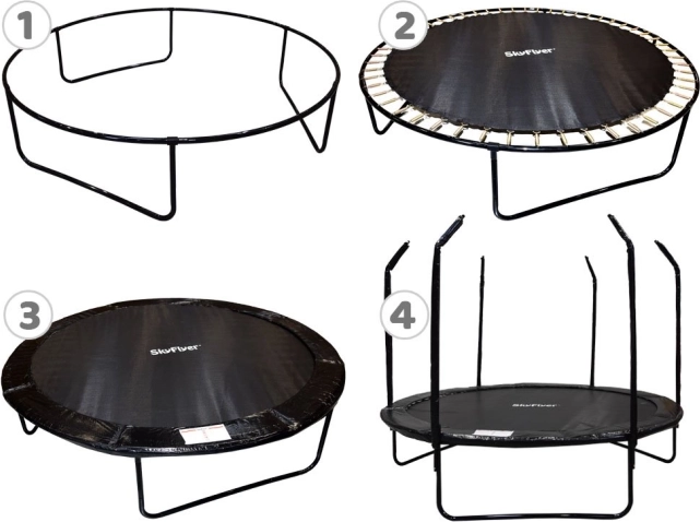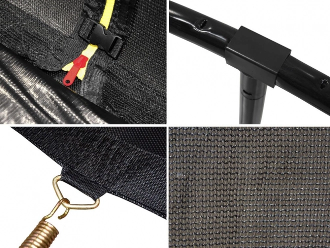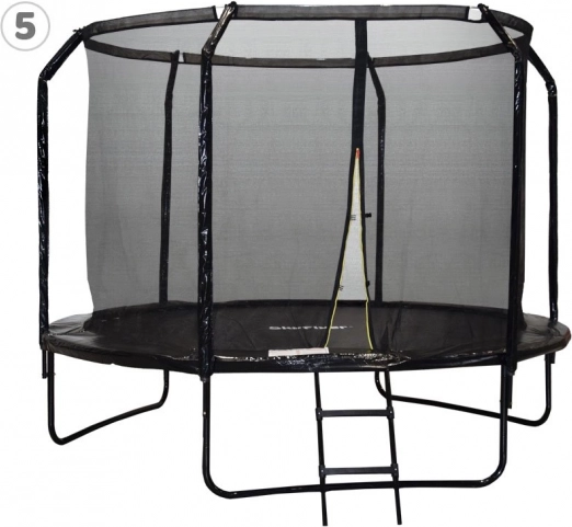 Im Paket finden Sie alles Nötige: Rahmen mit schwarz lackierten Rohren, Leiter für bequemen Einstieg, Federabdeckung (Pad), starke oxidierte Federn, wasserabweisende Schutzhaube und praktisches Zubehör einschließlich Spannhaken für Federn. Dank der durchdachten Konstruktion (Schrauben auf der Innenseite) ist der äußere Umfang glatt und sicher.