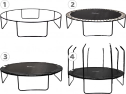Leiter, Sicherheitsnetz, Schnur zur Netzbefestigung, Anker mit Gurten, wasserabweisende Abdeckung, Federabdeckung (Pad), Werkzeug für Federn, Anleitung