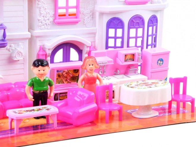 Faltbares Familien-Puppenhaus mit Möbeln und Figuren