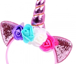 Weiches Schaumstoffhorn, glitzernde Öhrchen und bunte Blumen zaubern einen einzigartigen Einhorn-Look für jede Party.